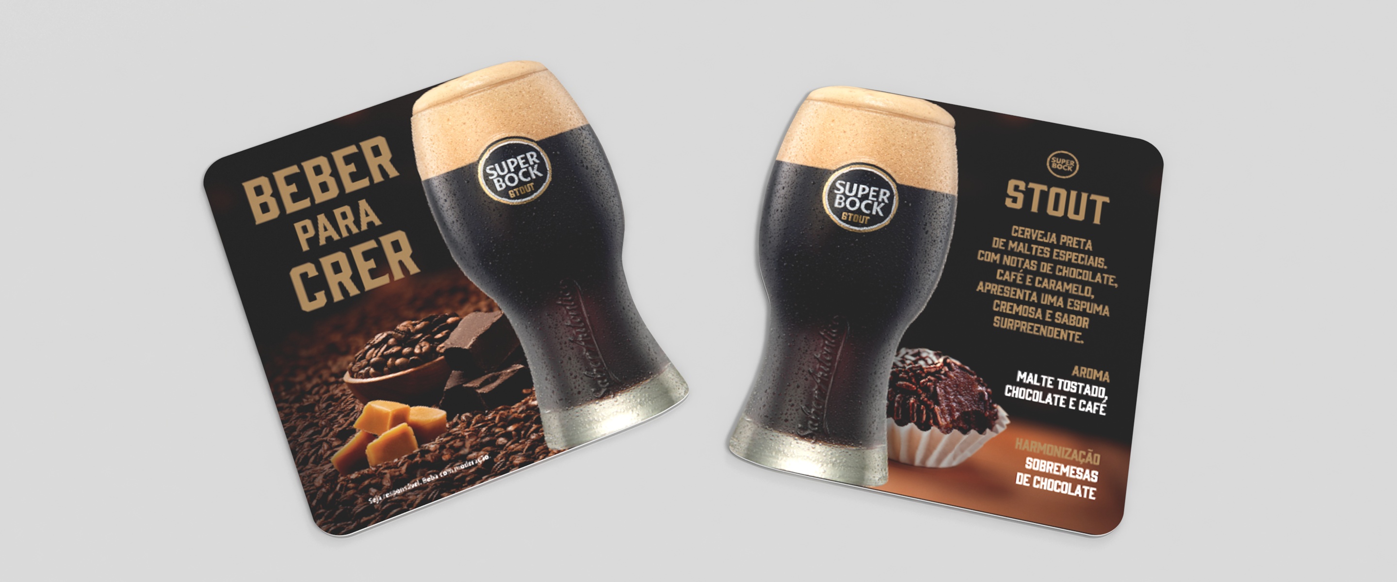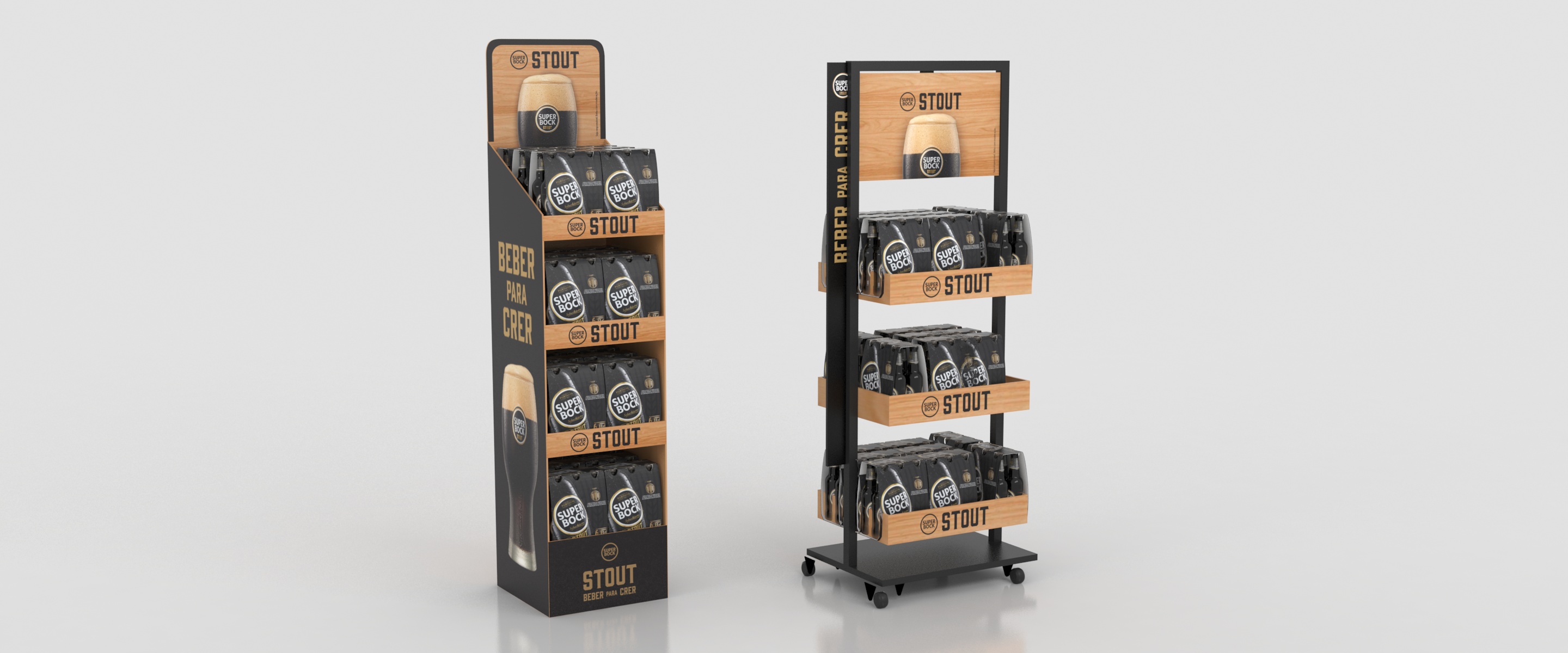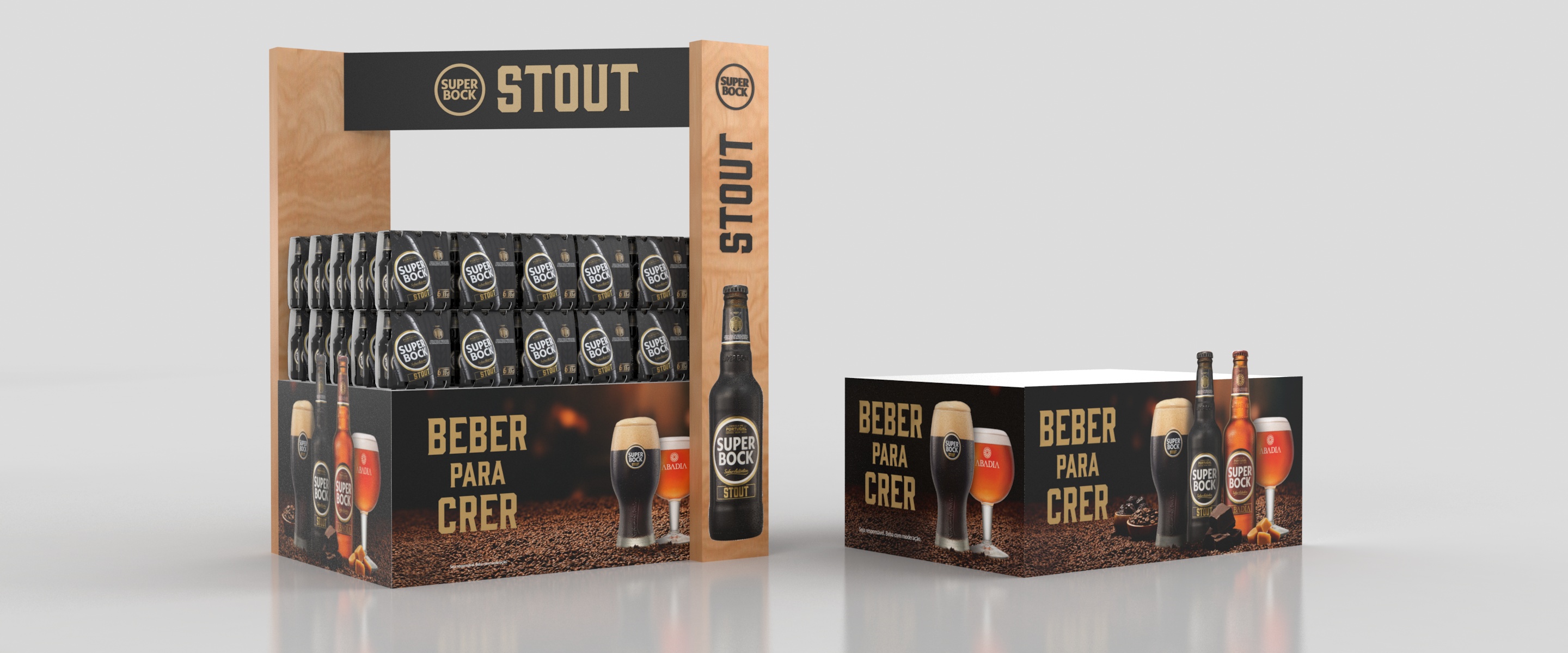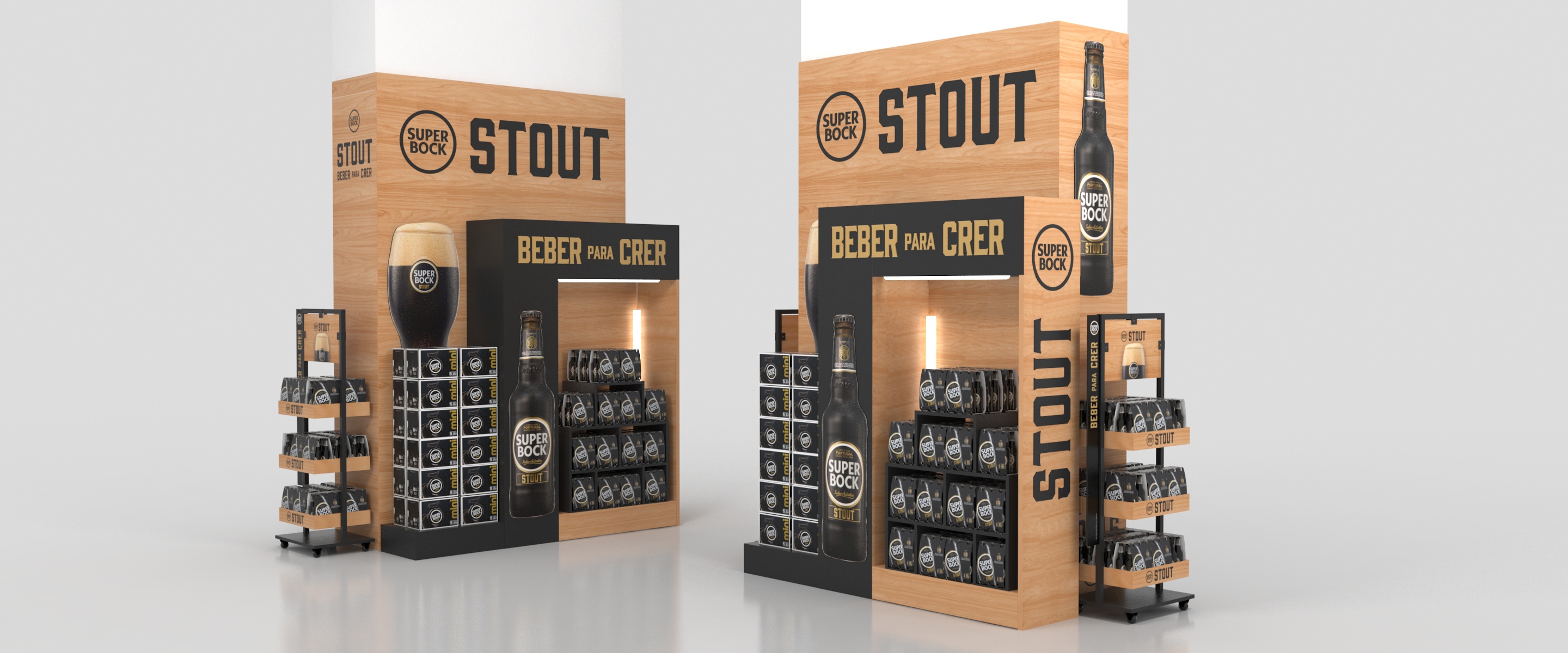 Após longos anos sem grande investimento em comunicação, Stout volta a reforçar a sua imagem como uma referência no mercado da cerveja preta. Para tal foram desenvolvidos diversos materiais para o retail, dando grande visibilidade ao produto e com grande apetite appeal.